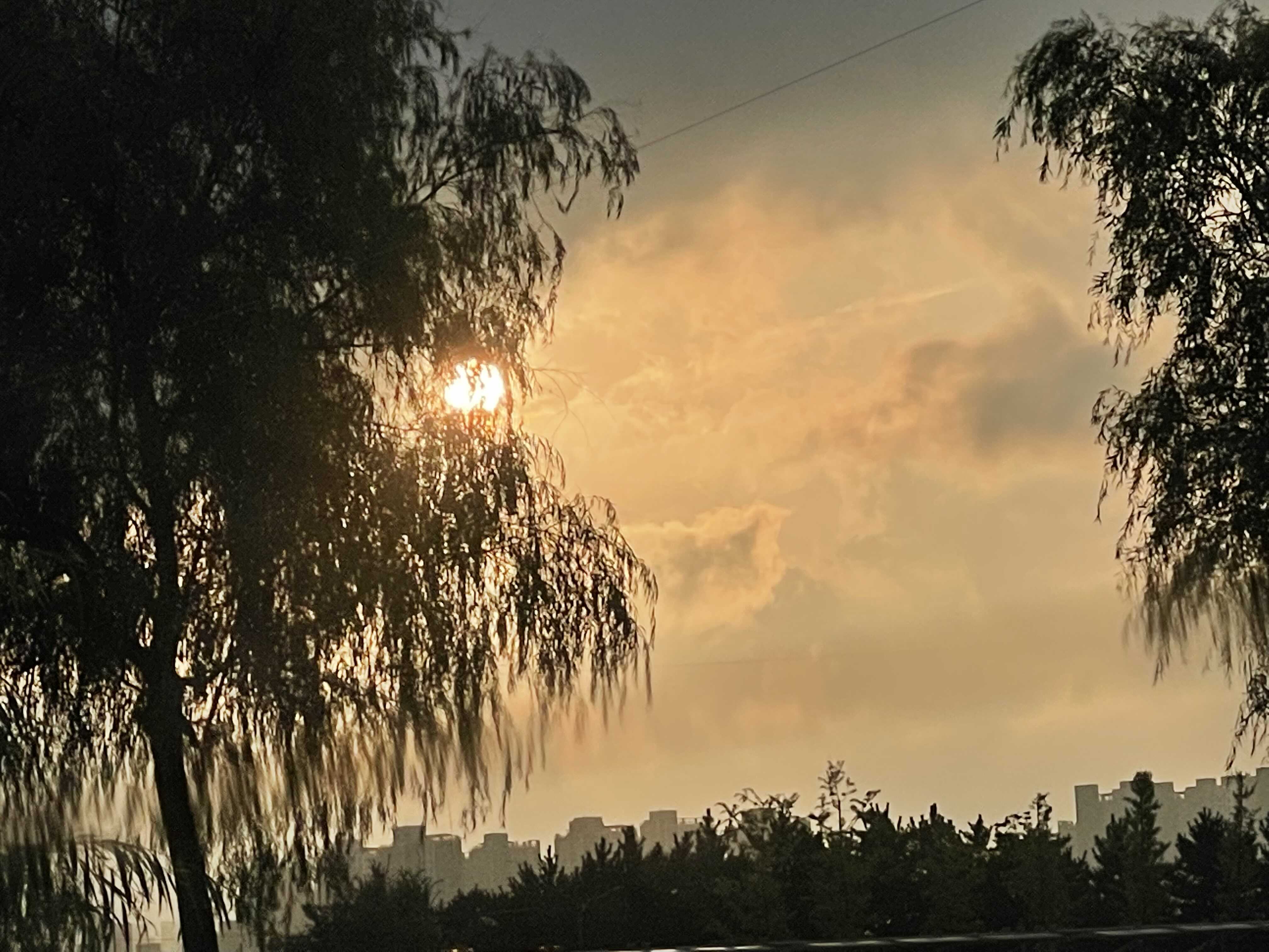 새벽에 비가 많이 왔지만, 아침에는 맑았다.