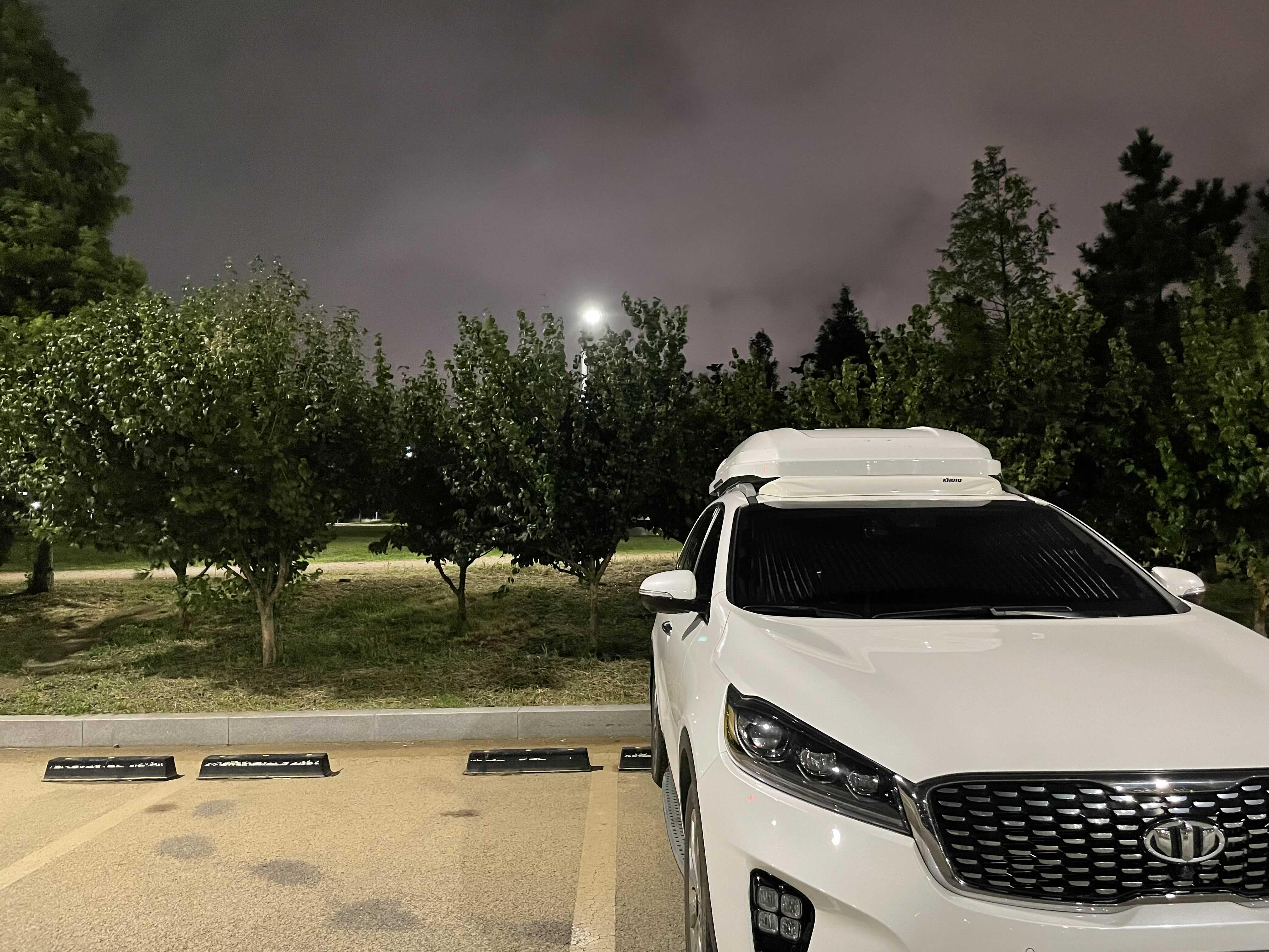 폭풍우가 예상되는 날이라 주차장에 차는 우리차 밖에 없었다. 살포시 트렁크문만 열고 한잔하였다.